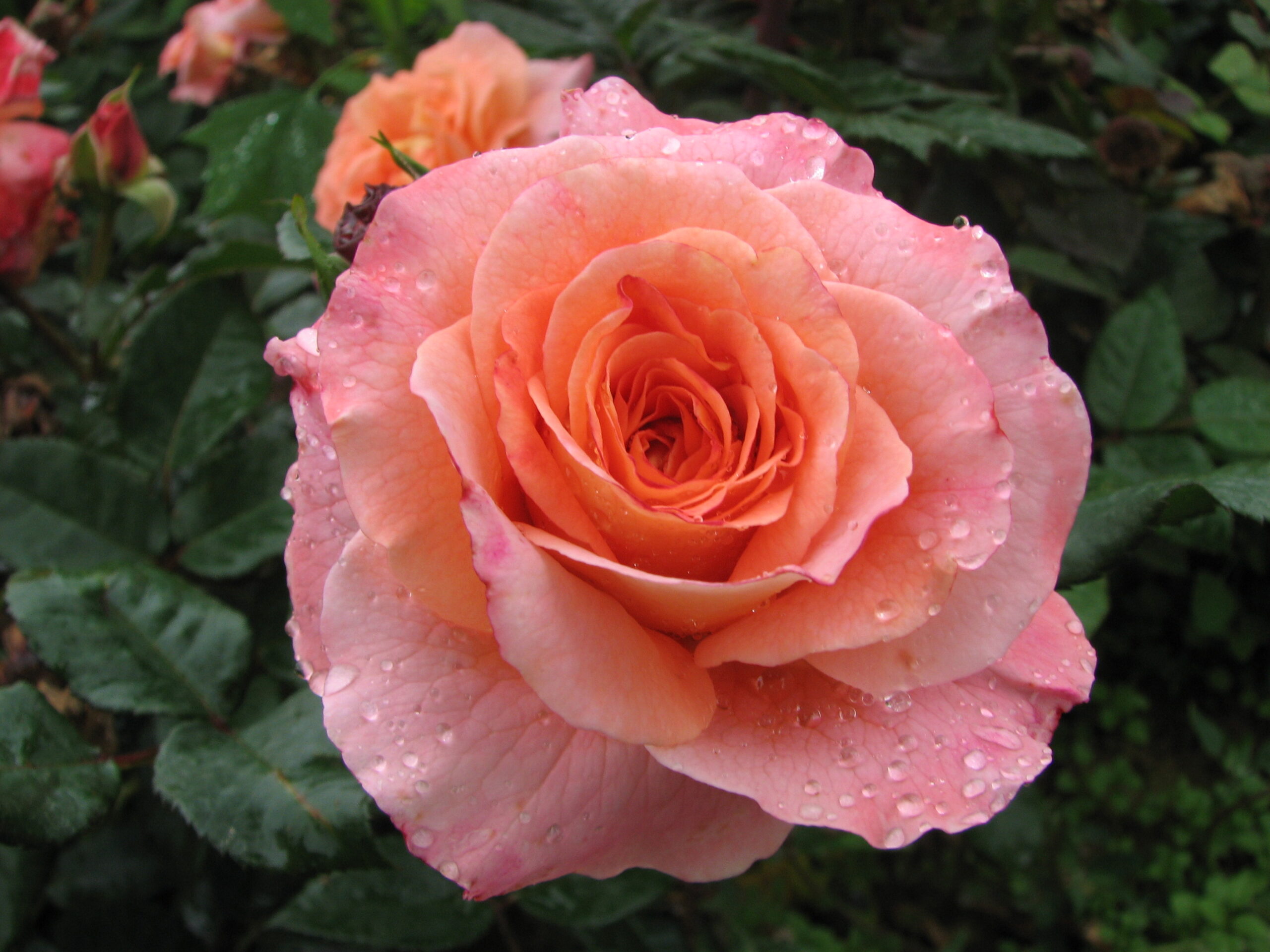 Traumhaft schöne Edelrose mit riesigen Blüten von rose bis apricot mit einem Anflug von rot und gelb, wuchsstark und robust, Duft fruchtig süß, blüht den ganzen Sommer