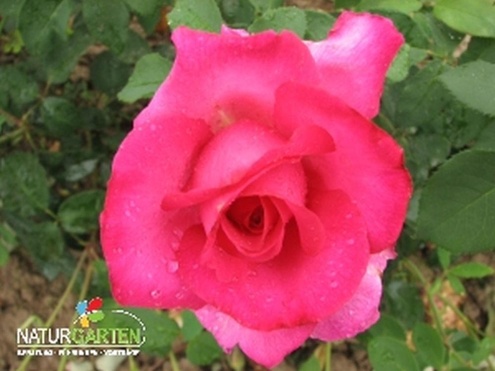Edelrose, Blüte kräftig pink mit lila Hauch, gigantisch groß und gefüllt, herrlich duftend, aufrechter, starker Wuchs, bis 90 cm
