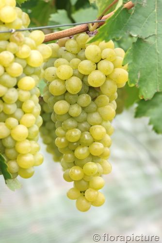 Trauben locker, rund, Beeren groß, knackig, gelb, Geschmack sehr angenehm, bissfest, Reife Anfang September bis Anfang Oktober, Wuchs aufrecht, stark, gute Pilz- und Botrytisfestigkeit, Ertrag hoch